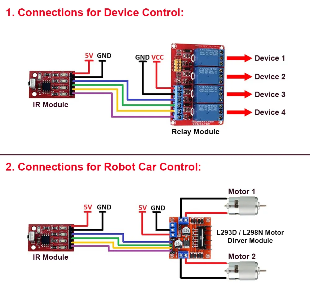 6. Multi-Purpose Control – Toggle devices and robot control with a single IR remote.